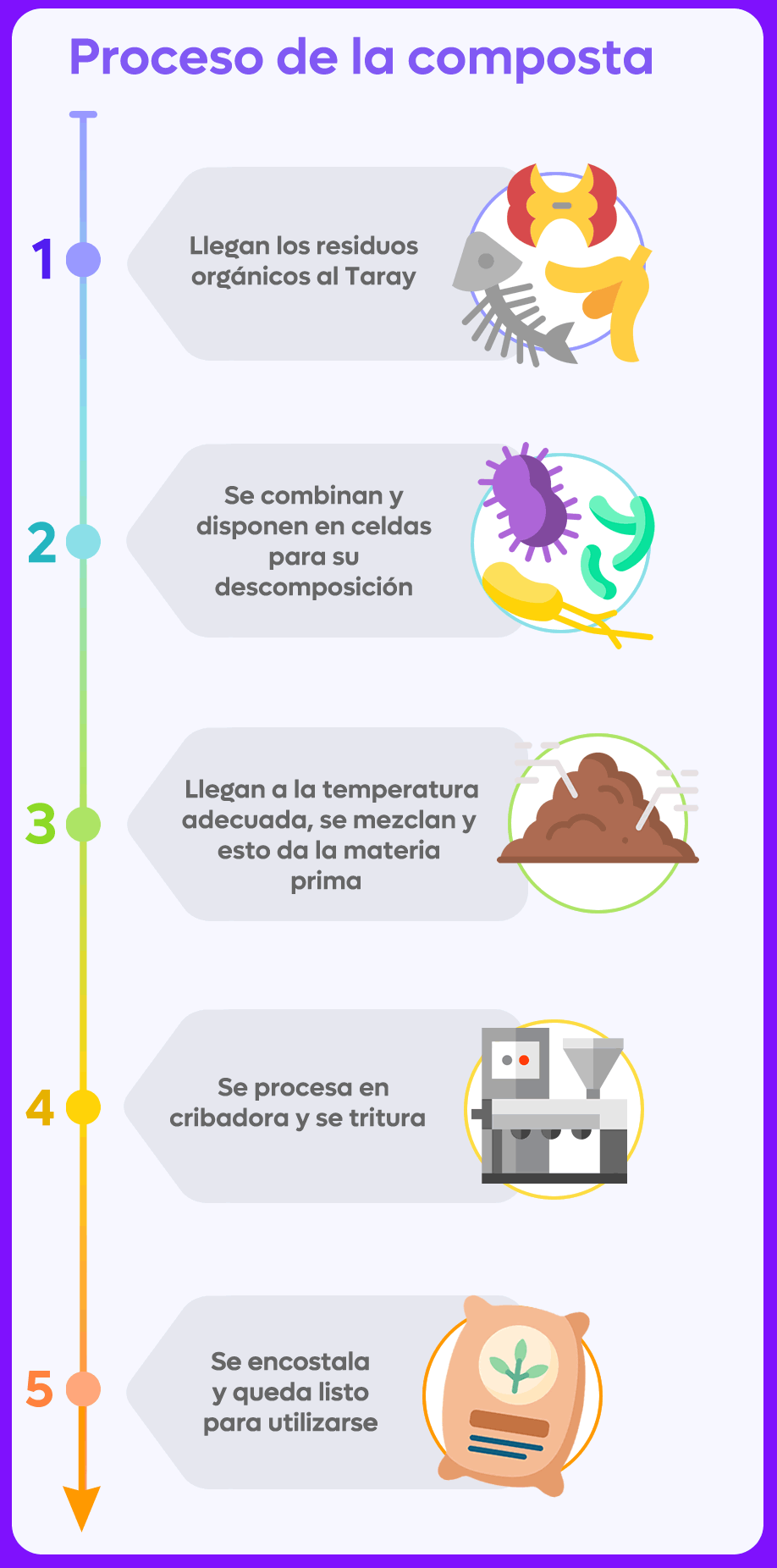 Este proceso permite reducir significativamente la cantidad de basura que se envía a disposición final, disminuir la generación de gases de efecto invernadero y regresar nutrientes a la tierra. La composta que se produce en Taray se utiliza para mejorar suelos, áreas verdes, parques y jardines del municipio, cerrando así el ciclo de los residuos de manera responsable.
